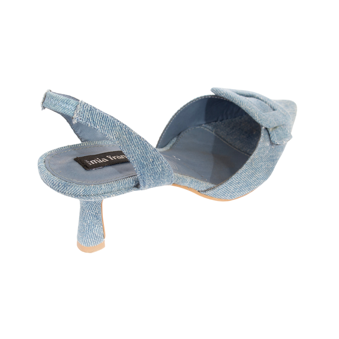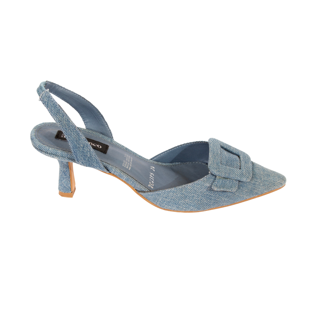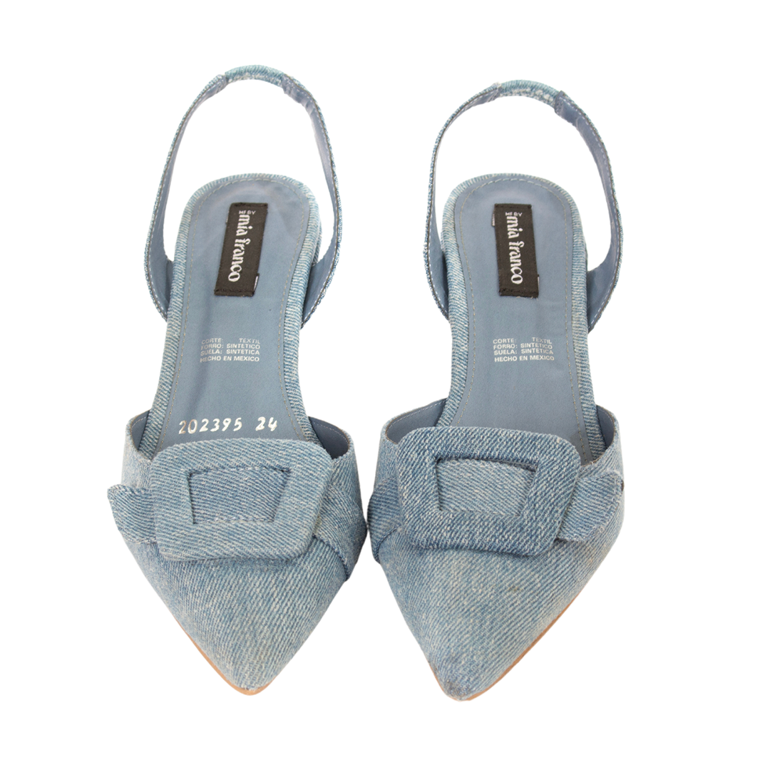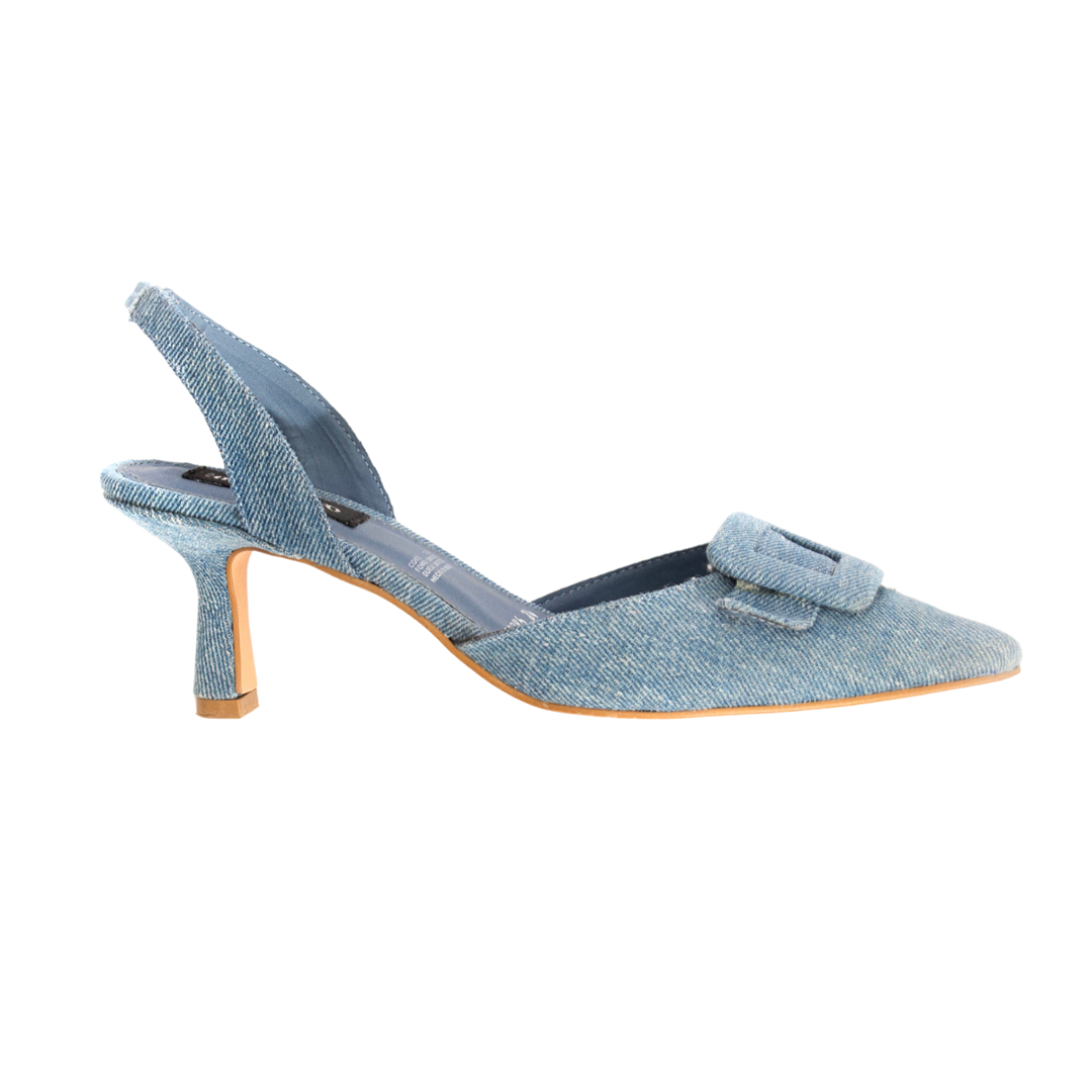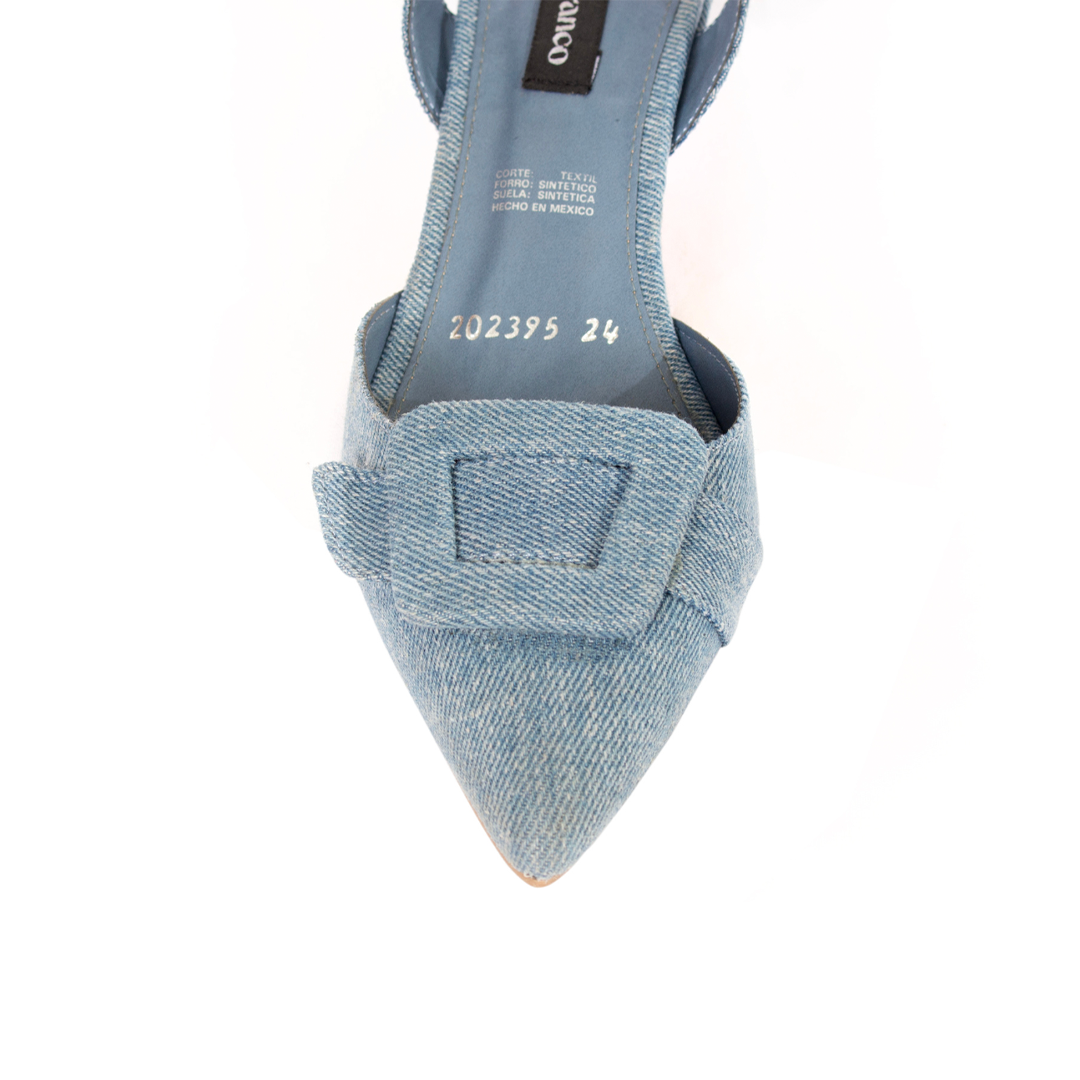 Destaca tu estilo con nuestras zapatillas destalonadas en mezclilla azul! Estas zapatillas son la combinación perfecta de moda y comodidad. Con una hebilla frontal forrada del mismo material que añade un toque de elegancia, estas zapatillas son ideales para cualquier ocasión. El tacón de 7 cm de altura, de terminación puntal y cómodo de aguja, no solo brinda una elevación perfecta, sino que también asegura que puedas caminar con confianza durante todo el día. Ya sea para una reunión informal o una noche en la ciudad, estas zapatillas destalonadas te mantendrán a la moda y cómoda en cada paso que des.