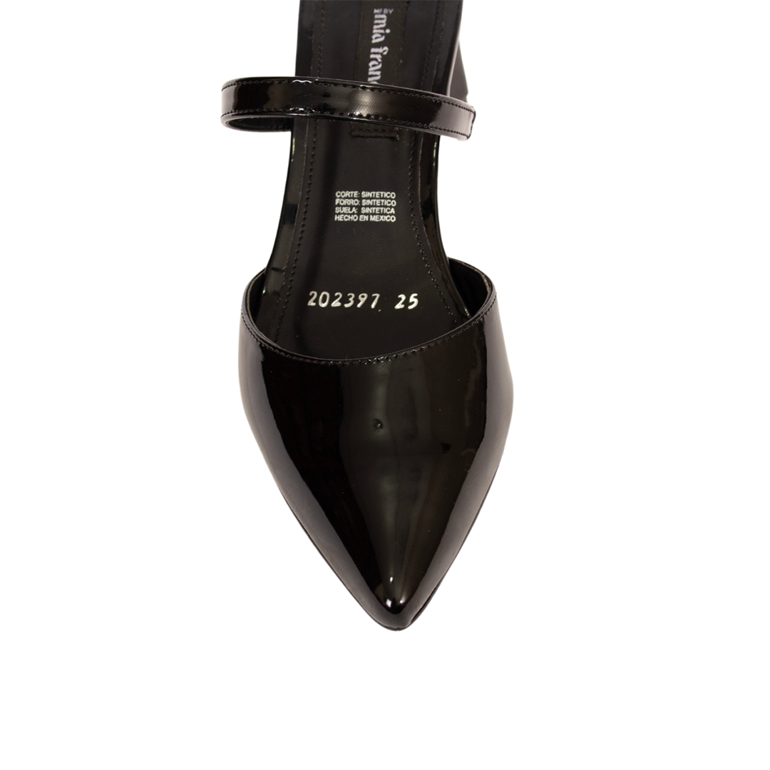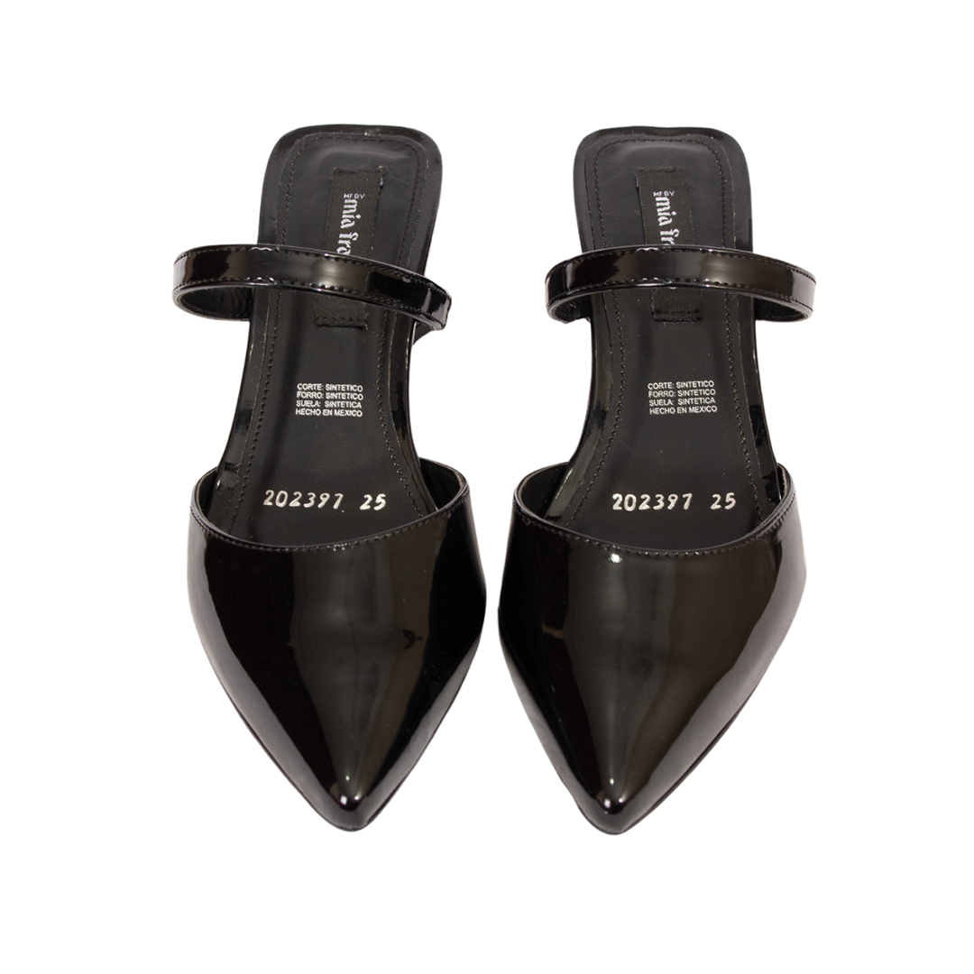 ¡Haz una declaración de estilo con nuestras zapatillas puntal en elegante charol negro! Estas zapatillas presentan un diseño moderno y cómodo que no pasará desapercibido. Con un tacón geométrico de altura de 6.5 cm, estas zapatillas ofrecen una elevación perfecta para cualquier ocasión. El estilo destalonado tipo mule junto con las dos tiras al frente no solo agregan un toque de sofisticación, sino que también proporcionan un soporte adicional para tus pies. Fabricadas con materiales de alta calidad, estas zapatillas garantizan comodidad durante todo el día, permitiéndote lucir bien y sentirte aún mejor. Ya sea para una reunión de trabajo o una salida nocturna, estas zapatillas son la opción perfecta para destacar con estilo.