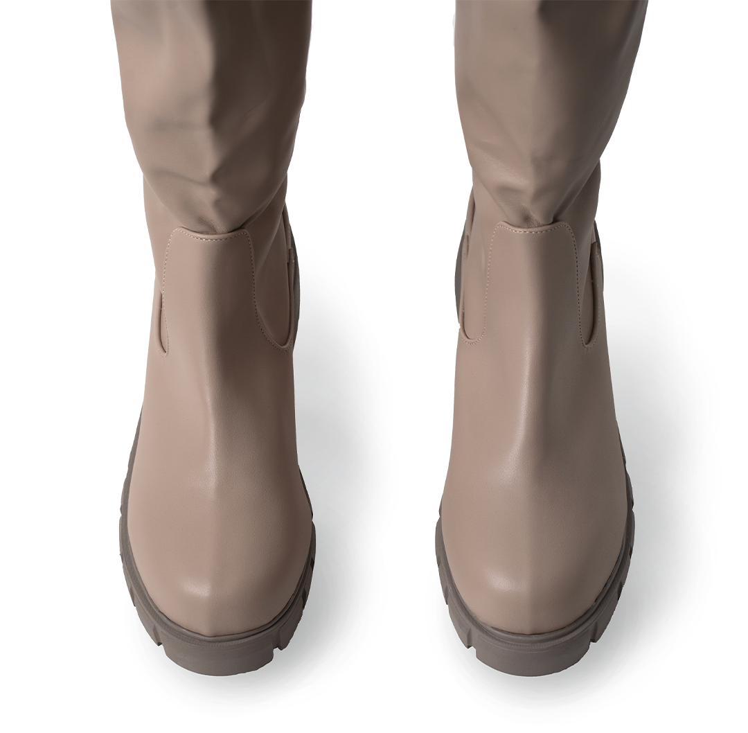 Haz una declaración de estilo audaz con nuestras botas altas de plataforma, diseñadas para elevar tu look a nuevas alturas. Con una plataforma de 5 cm que añade una dosis de altura sin sacrificar la comodidad, estas botas son la opción perfecta para quienes buscan un estilo vanguardista y versátil.